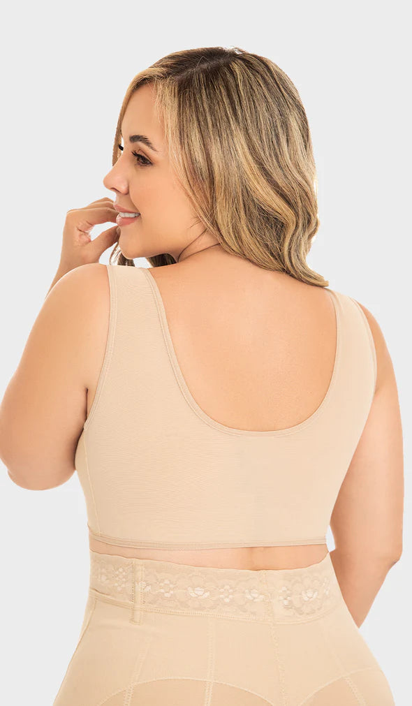 Bra Top type with back covered, wide straps with a base that provides support and enhancement under the breasts , for daily and post-surgical use.