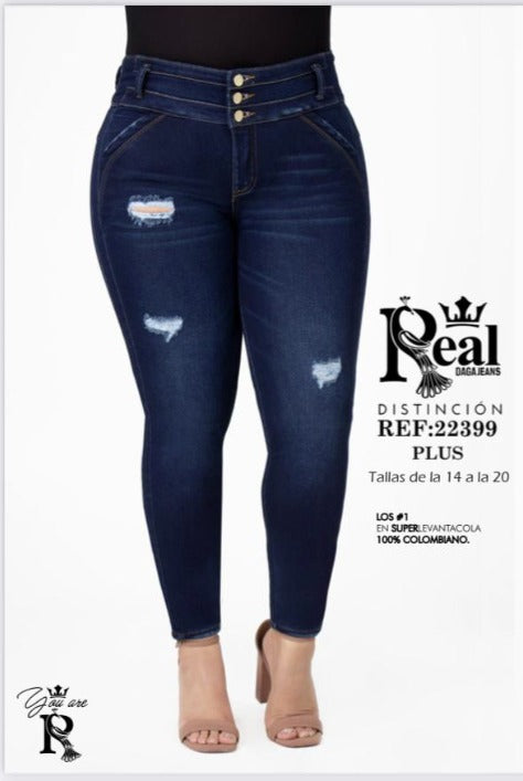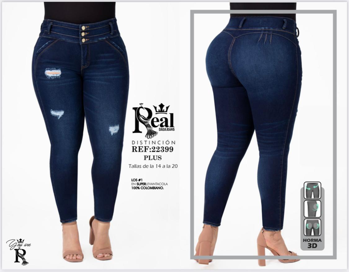 This BUTT ENHANCEMENT LIFTING PLUS SIZE Jeans by Real is the Jean you didn't know you needed, 100% Colombian Jean, with it's 3D butt-lifting effect it will having you walking more confidence than ever, turning heads everywhere you go with your New Butt Lifting Jeans by Real. REF 22399