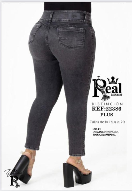 This BUTT ENHANCEMENT LIFTING PLUS SIZE Jeans by Real is the Jean you didn't know you needed, 100% Colombian Jean, with it's 3D butt-lifting effect it will having you walking more confidence than ever, turning heads everywhere you go with your New Butt Lifting Jeans by Real. REF 22386